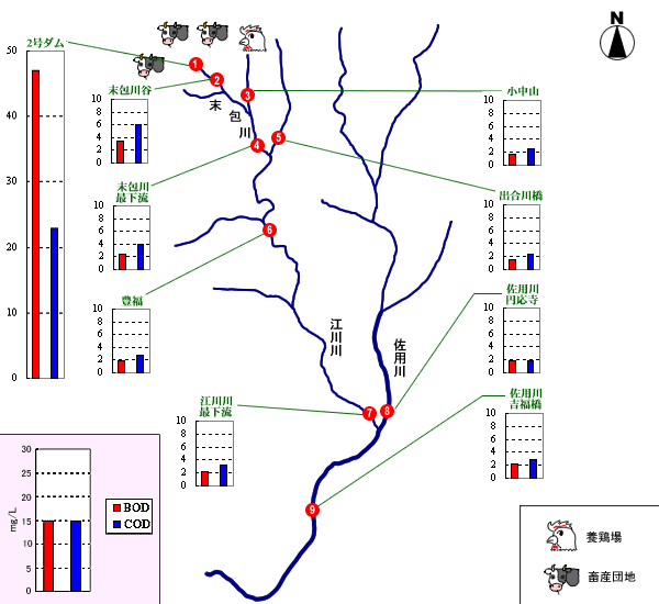 | 水質改善は、飼育牛の減少と尿処理施設の稼動のため |